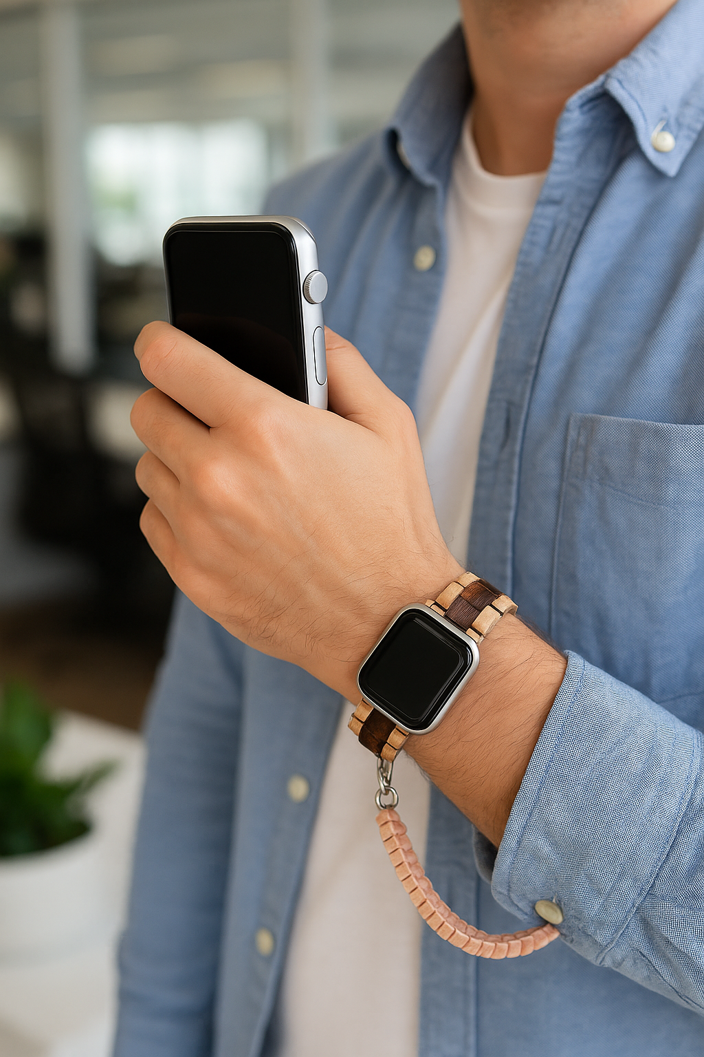 Ideal for both casual and formal wear, this wooden band transforms your tech accessory into a timeless fashion piece that balances modern innovation with natural elegance.