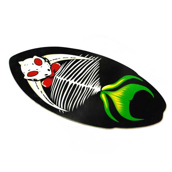 Highlighted is a swim board coming with a streamlined wooden structure. The hard top is coated with protective resin for long-lasting beauty. The colorful fish-bone prints make it look stylish.