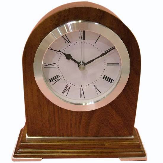 This wooden table clock is finely crafted in a distinctive arc shape. The polished round frame adds a lustrous touch to the design. It makes a practical and stunning display to spice up your home decor.