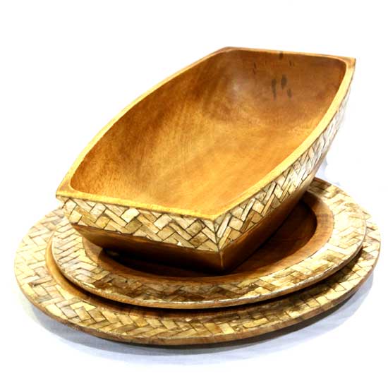 The tableware set includes several plates and bowls with matching designs. Each piece showcases a top-grade wooden construction, which takes you back to the nature with a touch of modesty. Meticulous craftsmanship is revealed without reservation by the graceful details flowing along each piece. Dress up your home decor with this beautiful wooden tableware set.
