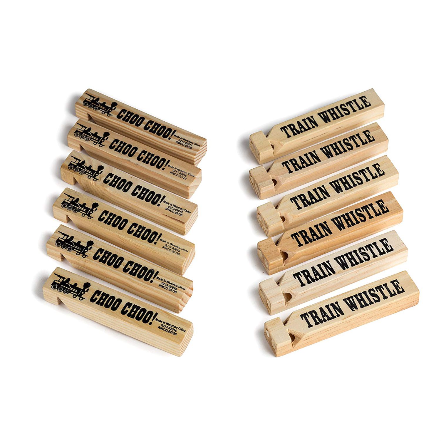 Simply blow the whistle to produce the old time locomotive sound! Future train conductors will have fun making some noise with these wooden Train Whistles for kids!
