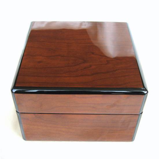 Protect your finest watches in the featured watch box. The box comes with a high gloss finish and black rims. With beautiful veins, the wooden box also functions as a beautiful dresser accessory.