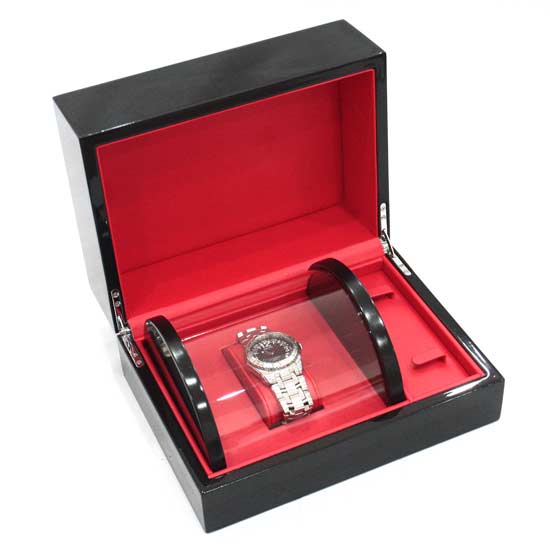 The quality wooden watch box bestows a metallic black surface with a high-gloss finish. The PU leather lining and the arc-shaped acrylic cover bring ultimate protection to your decent stylish watch. Store and display your delicate watch with this high-grade wooden watch box.