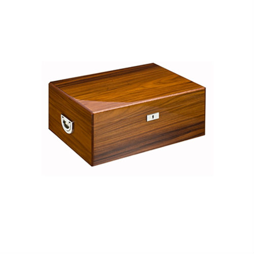 This luxurious wooden humidor is coated with Brazilian rosewood veneer in piano finish. Fitted with digital hydrometer/thermometer and two humidifers. With movable tray to maximize storage space and separate different cigars if needed.