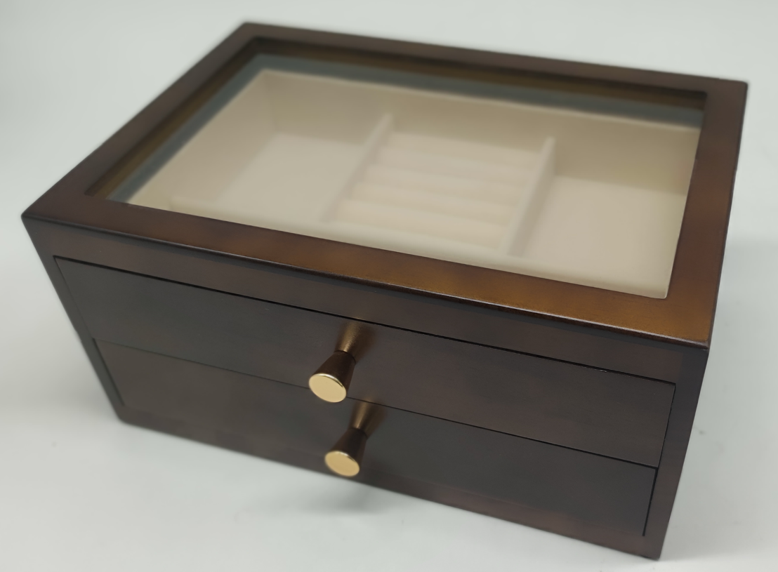 Exquisite black walnut jewelry box, every piece of jewelry collected is a little secret with every girl/lady. The wooden jewelry box features 2 drawers to organize watches, earrings, bracelets, rings, necklaces, and more.
