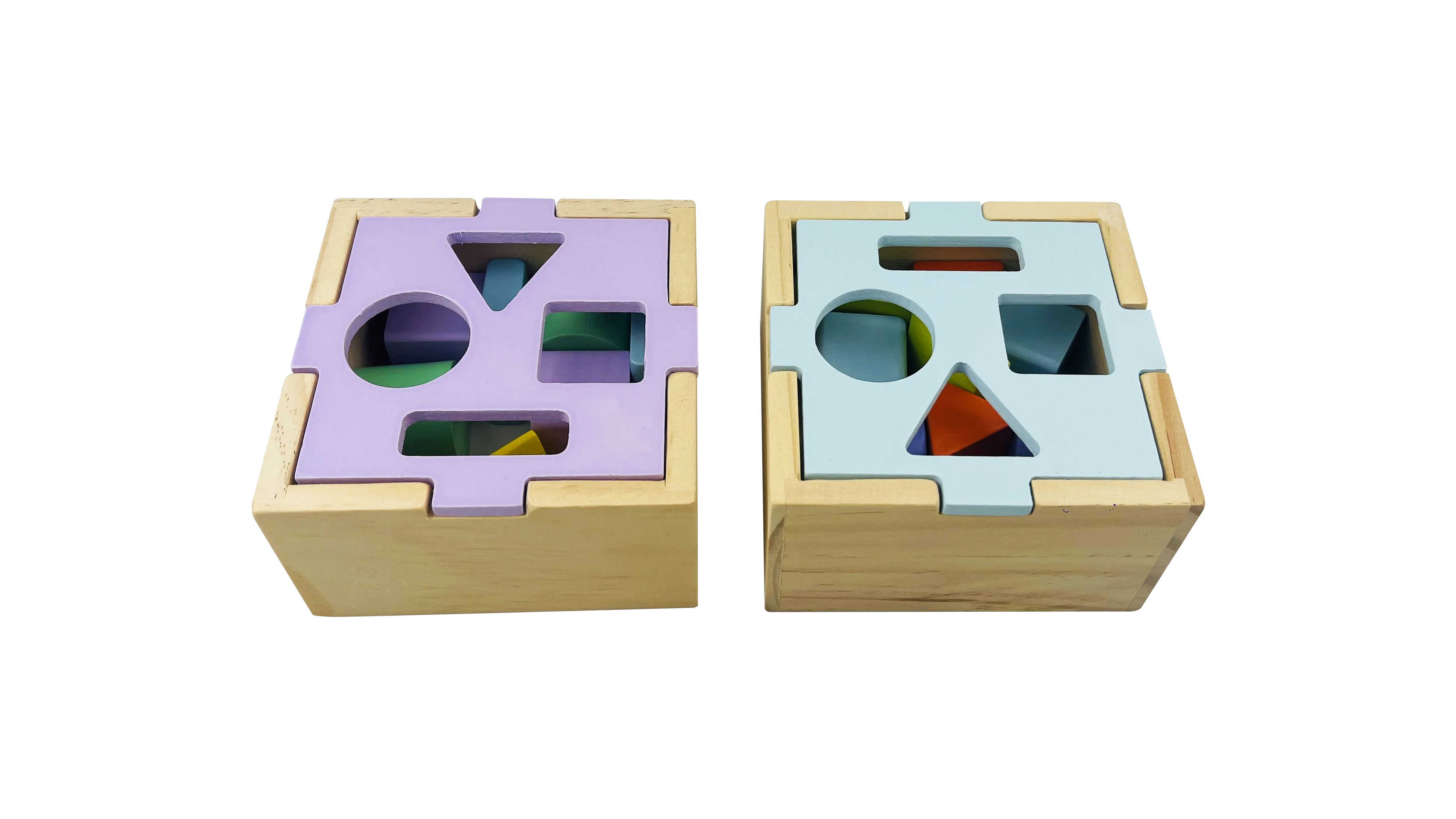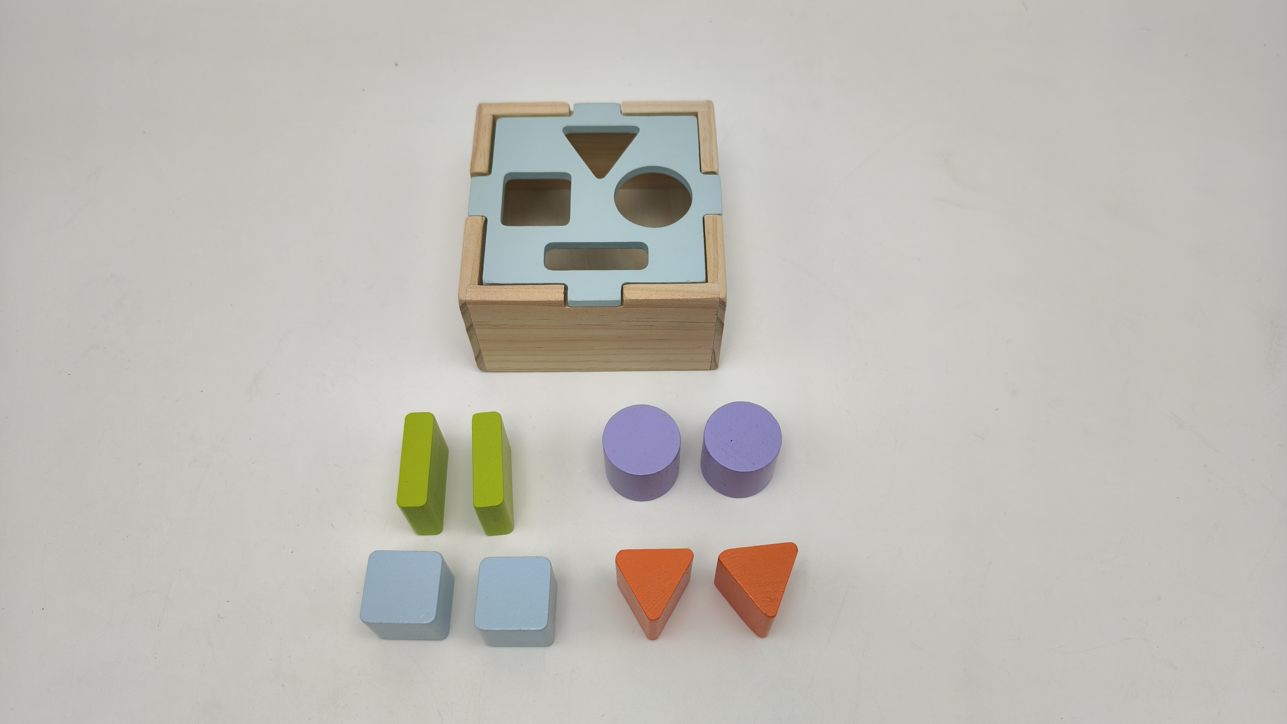 Professional water-based paint coloring, with bright colors that do not fade easily, hard texture and resistant to damage.The baby takes out the wooden blocks from the intelligence box one by one and can place them in any order as he wishes. Enhance your baby's understanding of shapes while having fun and learning at the same time. The lids of the intelligence box have holes of different shapes, which can match the corresponding shape building blocks.This toy can stimulate a baby's imagination and help improve their hand-eye coordination skills.