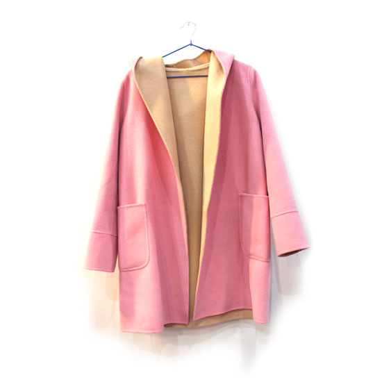 This is a jacket made of high-quality wool material. It features a yellow interior and a pink exterior for a touch of style. This jacket goes well with assorted trousers for an eye-catching look.