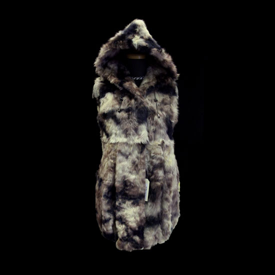 This hooded wool vest jacket is a modern and stylish choice for ladies. The assorted fur materials give it glamorous look. The knee-length construction serves to elongate the wearer's figure and keep her warm.
