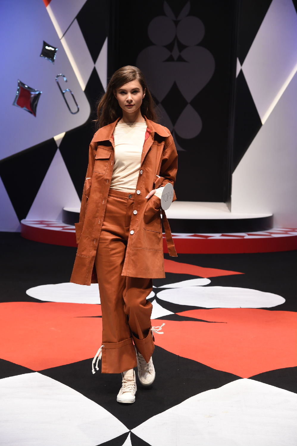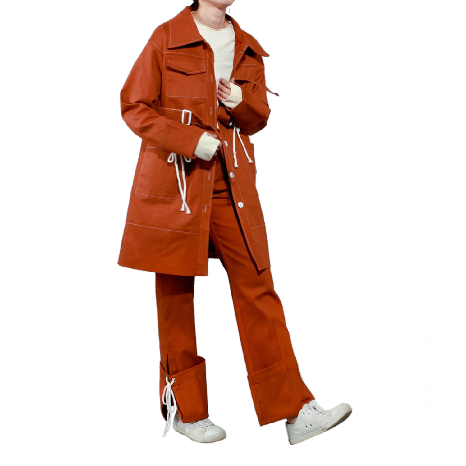 Infused with elements of workers’ uniform, this set boasts a savvy look in a structured profile crafted of stiff fabric to give a sense of urban charm. This set attracts turn heads with a beautifully-shaped jacket and straight-legged chinos, portraying an attitude of casualness with a loose silhouette. The contrasting drawstrings and buttons play a visual interest that highlight the set with details.