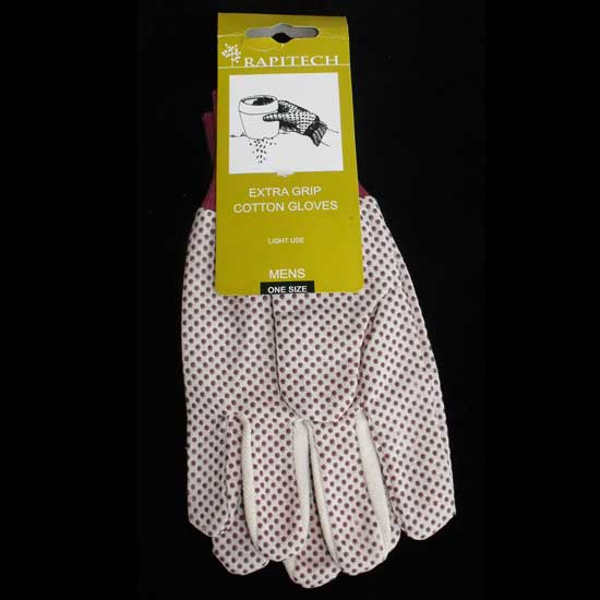 Displayed here is a pair of working gloves with polka dot patterns. It is made of cotton for comfortable wearing. This pair of working gloves is suitable for various industrial applications.