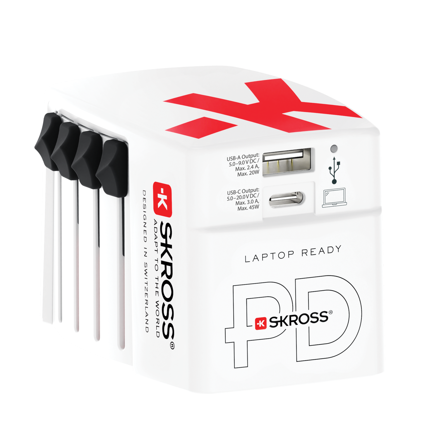 With the World USB Charger AC45PD you can simultaneously charge two USB devices in over 220 destinations worldwide, thanks to its unique sliding plug mechanism.