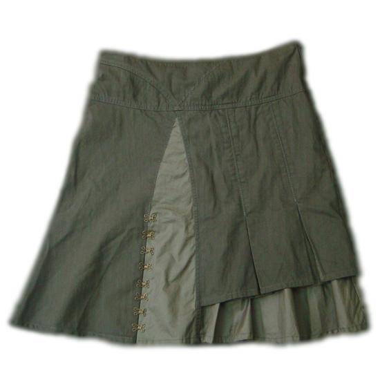 The A-shaped skirt comes with two asymmetrical layers in different colours and a pleated-hem at the bottom. The little knots along the vertical seam bring out a unique style that makes the skirt a great item for mix and match.