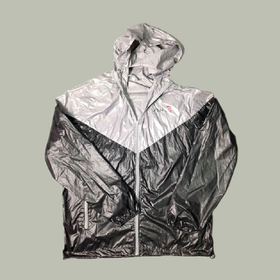 This woven jacket comes with a fashionable two-toned appearance. It is made of robust polyester fabric with a glossy exterior. This jacket is completed with a zip front closure and a hood.