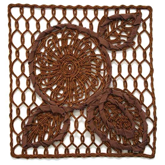 This woven label boasts a floral design with mesh detailing. The sophisticated seaming prevents any frayed edges.