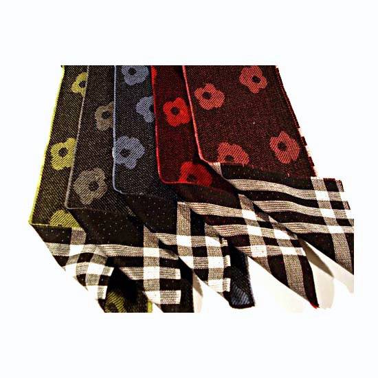 Featured here is an elegant scarf that is designed for ladies. This scarf is lavishly decorated with woven flower patterns on one side and woven stripe patterns on the other side. This beautiful scarf will go well with most winter garments.