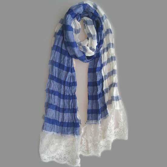 This is a scarf that comes in refreshing blue stripes. Professionally woven, this scarf is soft and comfortable. This woven scarf is great for pairing up with light-textured garments.