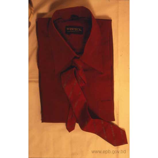 Presented is a stylish shirt that is made of woven techniques. This beautiful shirt is dyed in a regal reddish tint, showcasing style and sophistication. Wear this for a touch of stylish elegance.