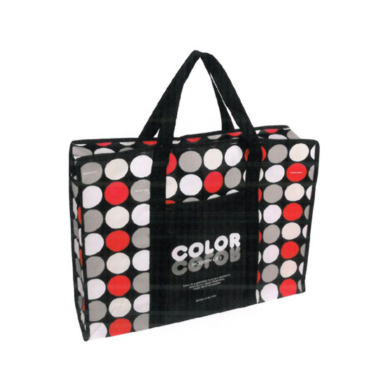 This is a woven shopping bag that comes with a natural texture. It is designed with two top handles for easy carrying. The allover colorful dot patterns add a touch of elegance to the whole piece.