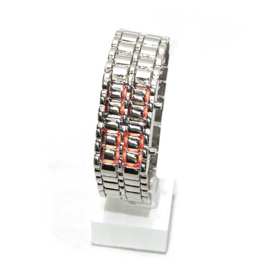 This wristwatch in a silver color is made of stainless steel for a contemporary touch. It can show the time in digital numbers and in a red light when pressing the button. This cool wristwatch is a smart choice to complement your look.