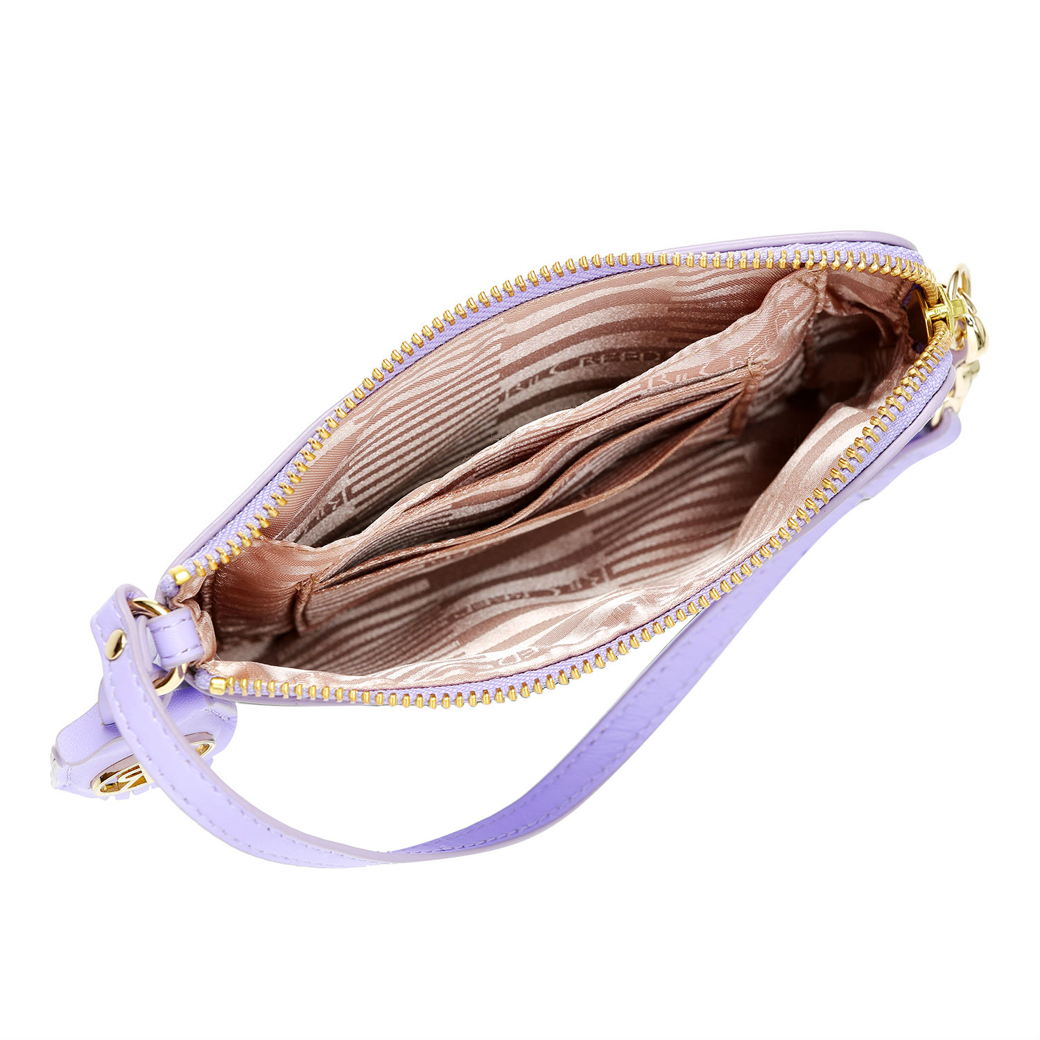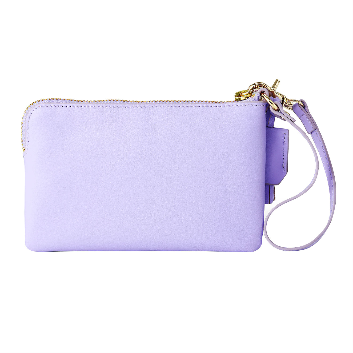 Make a fashion statement with this lovely wristlet. This light purple wristlet features a main compartment with a secure zipper closure. The interior is printed with inviting exotic graphics. Light and user-friendly, this wristlet is perfect for keeping small items like cell phones and credit cards, etc.