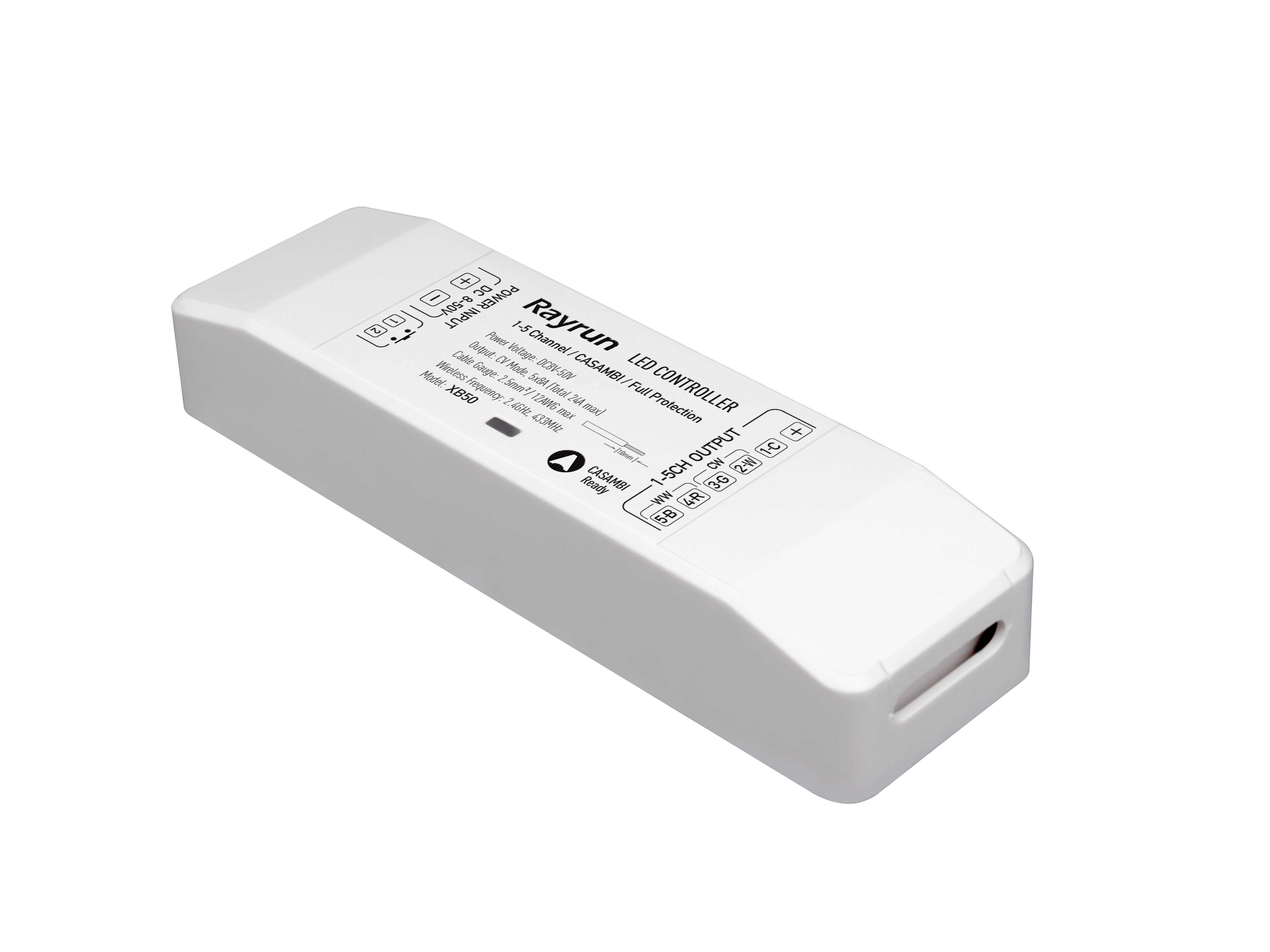XB50 LED controller is designed to drive single color to RGB+CCT constant voltage LED products in voltage range of DC 8-50V . With powerful functions of Casambi platform, it also has advanced user parameters to fine tune the application. It has full protection function to ensure the safety, and with push cable connectors, the installation will be simple and reliable.