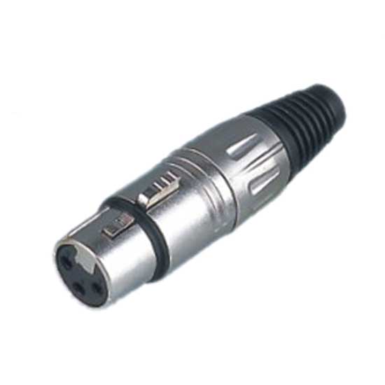 Connect microphones to other devices with this XLR female connector. It has a silvery and black construction and has a 3-hole socket for connection. This microphone connector is meticulously crafted to ensure excellent performance and offers long lasting use.