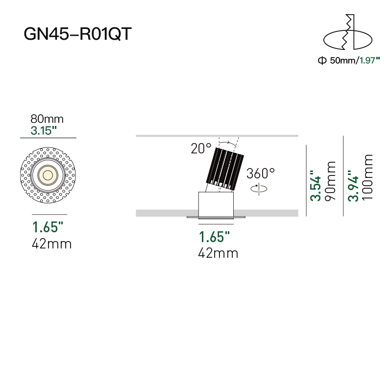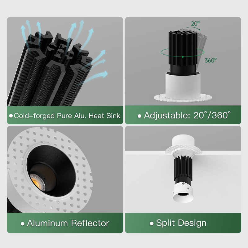 XRZLux 10W COB LED Downlight Anti-glare Spotlight Recessed Trimless ETL Down Light Aluminum Ceiling Spot Light