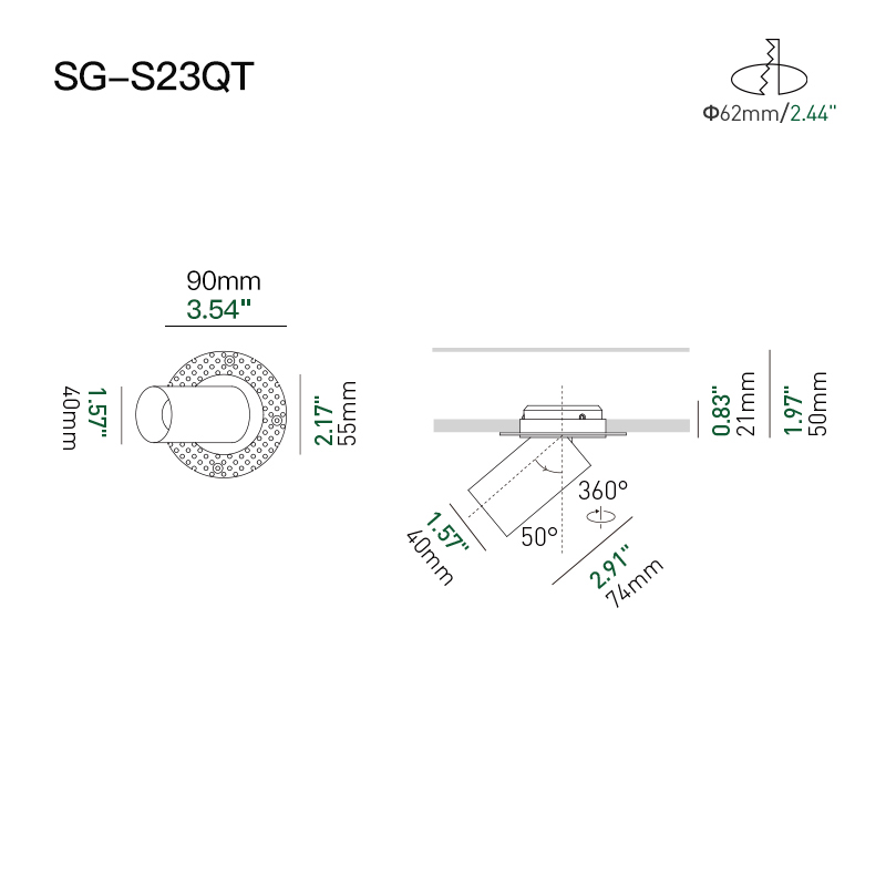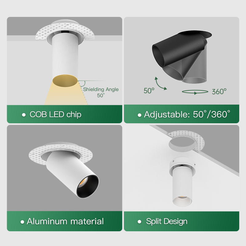 XRZLux 10W ETL LED Downlight Aluminum Anti-glare Adjustable LED Wall Washer Light Dimmable Recessed Trimless Ceiling Spotlight