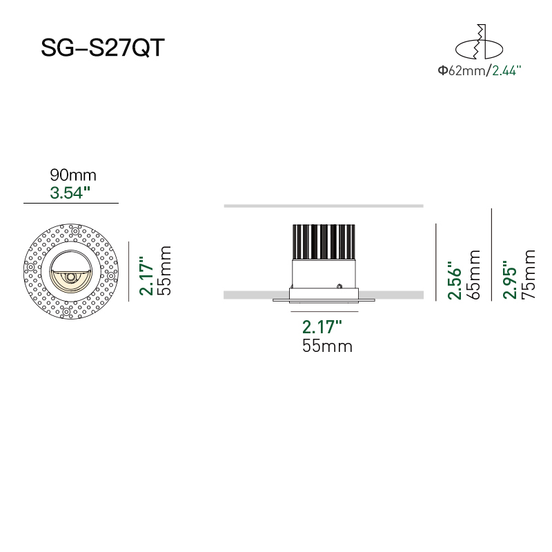 XRZLux 15W LED Wall Washer Spotlight Trimless Round Recessed Modern LED Downlight Aluminum ETL Down Light for Indoor Lighting