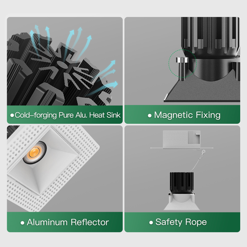 XRZLux 15W Waterproof ETL COB Downlight Recessed LED Ceiling Spot Lights IP44 Kitchen Bathroom Square LED Spotlights