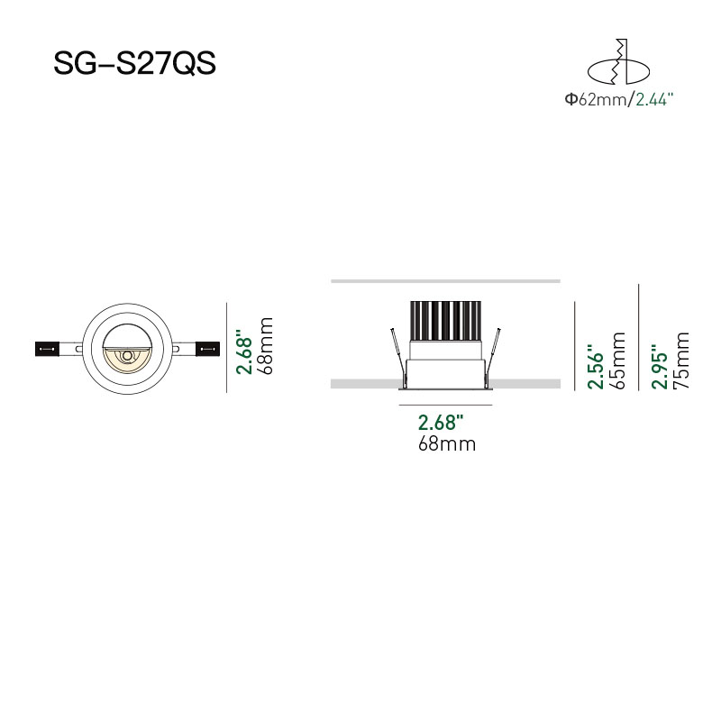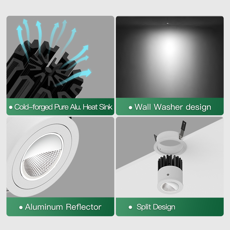 XRZLux 2-inch Recessed Polarized ETL Downlight Round LED Ceiling Spot Light 15W COB Led Wall Washer Downlight for Home Hotel