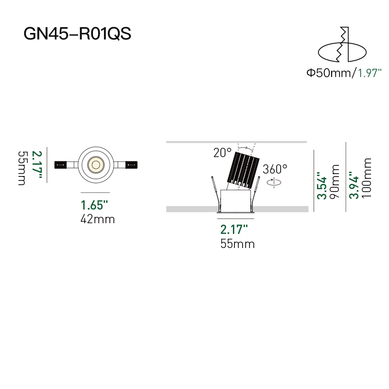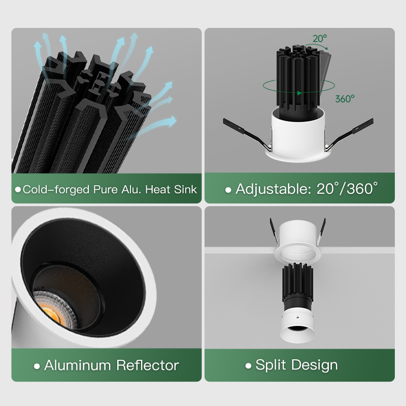 XRZLux Adjustable Led Spot Lights 10W COB Ceiling Anti Glare Recessed Downlight Aluminum Down Lights GENII Round Spotlights