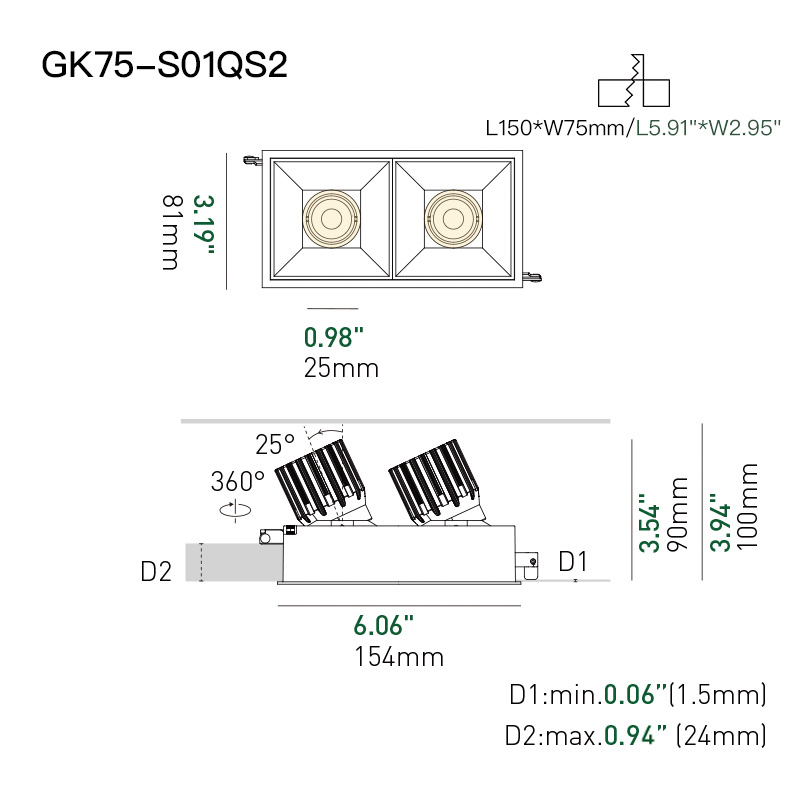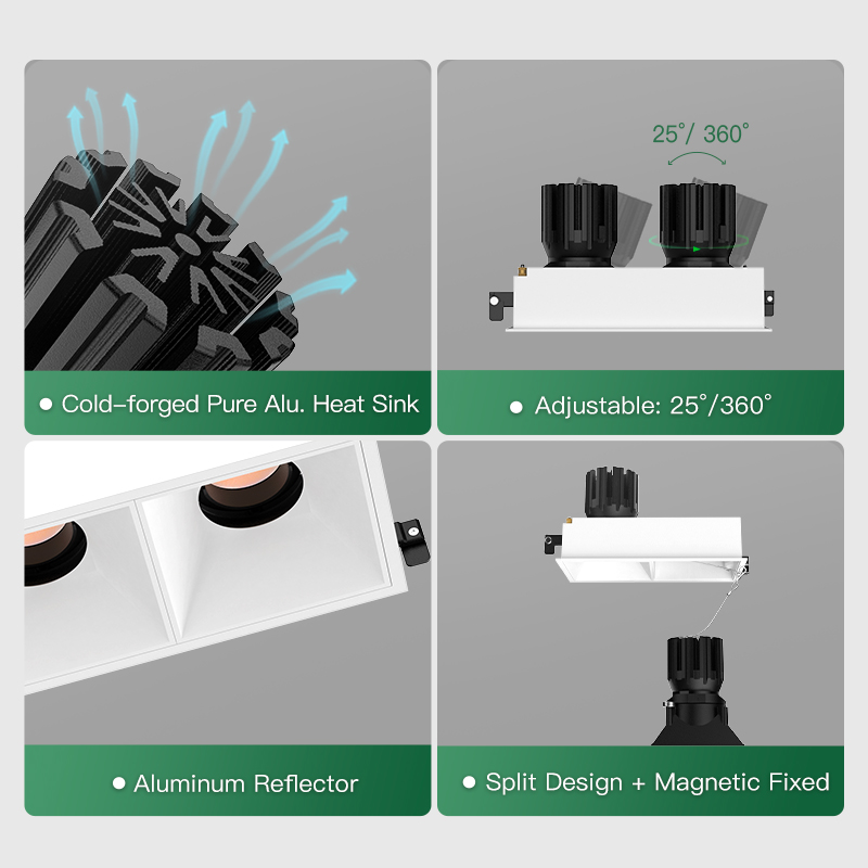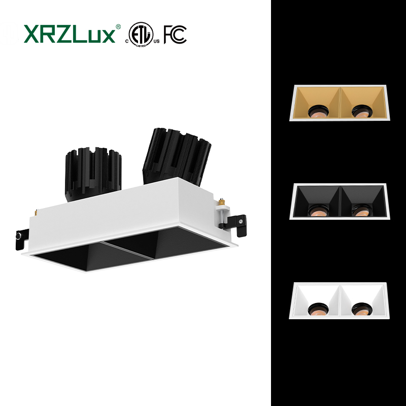 XRZLux ETL LED Square COB Downlight 15W*2 Double Heads Anti-glare Recessed LED Downlight Adjustable Ceiling Spotlight