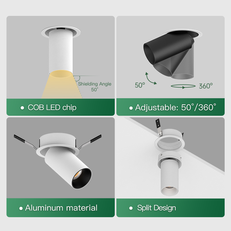 XRZLux Round Wall Washer Spotlight Aluminum Black Recessed Downlight Hotel Spot Light 10W Adjustable Anti-glare ETL Down Light