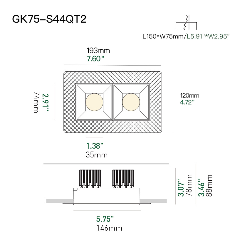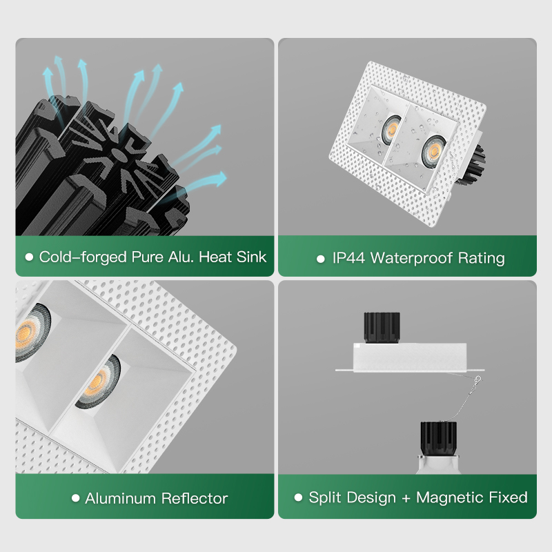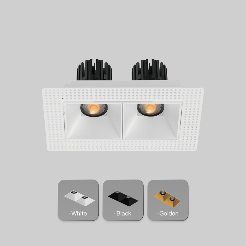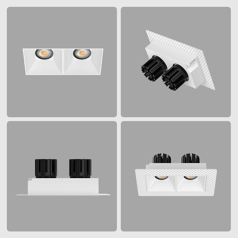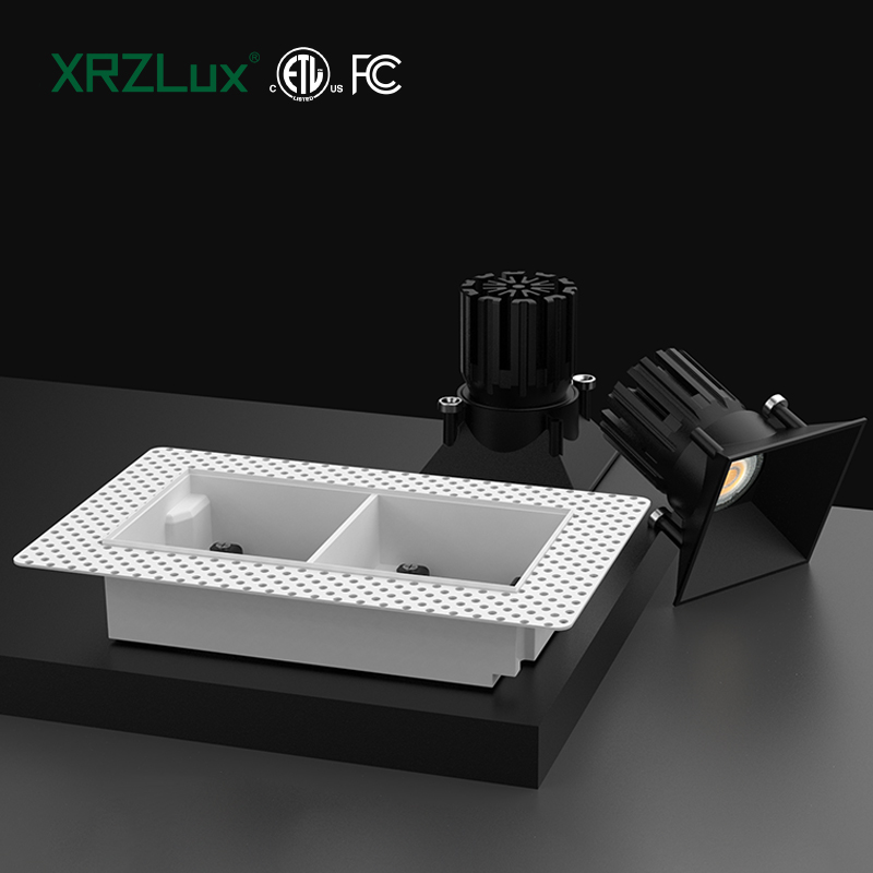 XRZLux Square Trimless Aluminum Recessed COB LED Downlight Double Heads 30W Anti-glare LED ETL Ceiling Spotlight