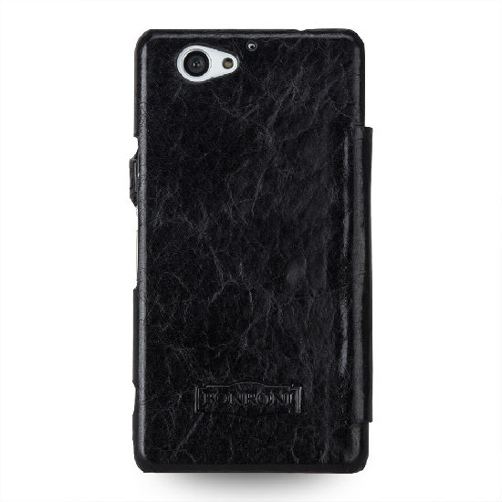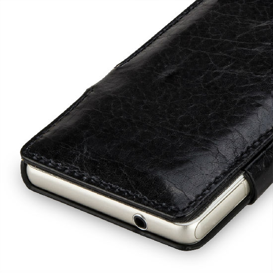 BONRONI Premium Leather Case for Sony Xperia A2 SO-O4F [Malus III - Elektra: Onxy Black]