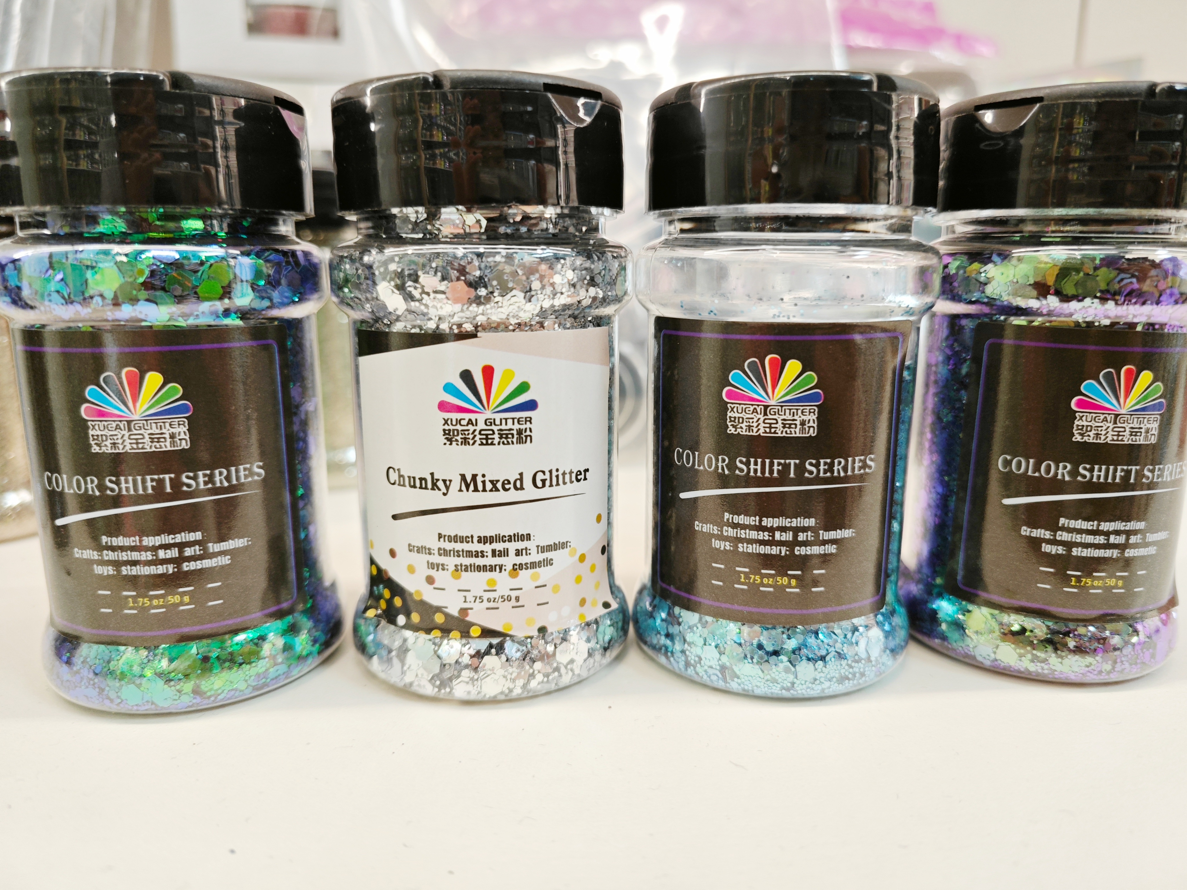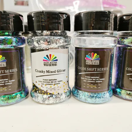Xucai glitter powder is widely used in ink coatings, nail and makeup, glass craftsmanship, shoe material craftsmanship, Christmas ornaments, clothing printing, building materials decoration, paper printing, plastic products, electronic products and other fields. The product has the characteristics of high temperature resistance, solvent resistance, acid and alkali resistance, and injection molding capability. With unique visual effects and high flash characteristics, the product's colors are bright and eye-catching.