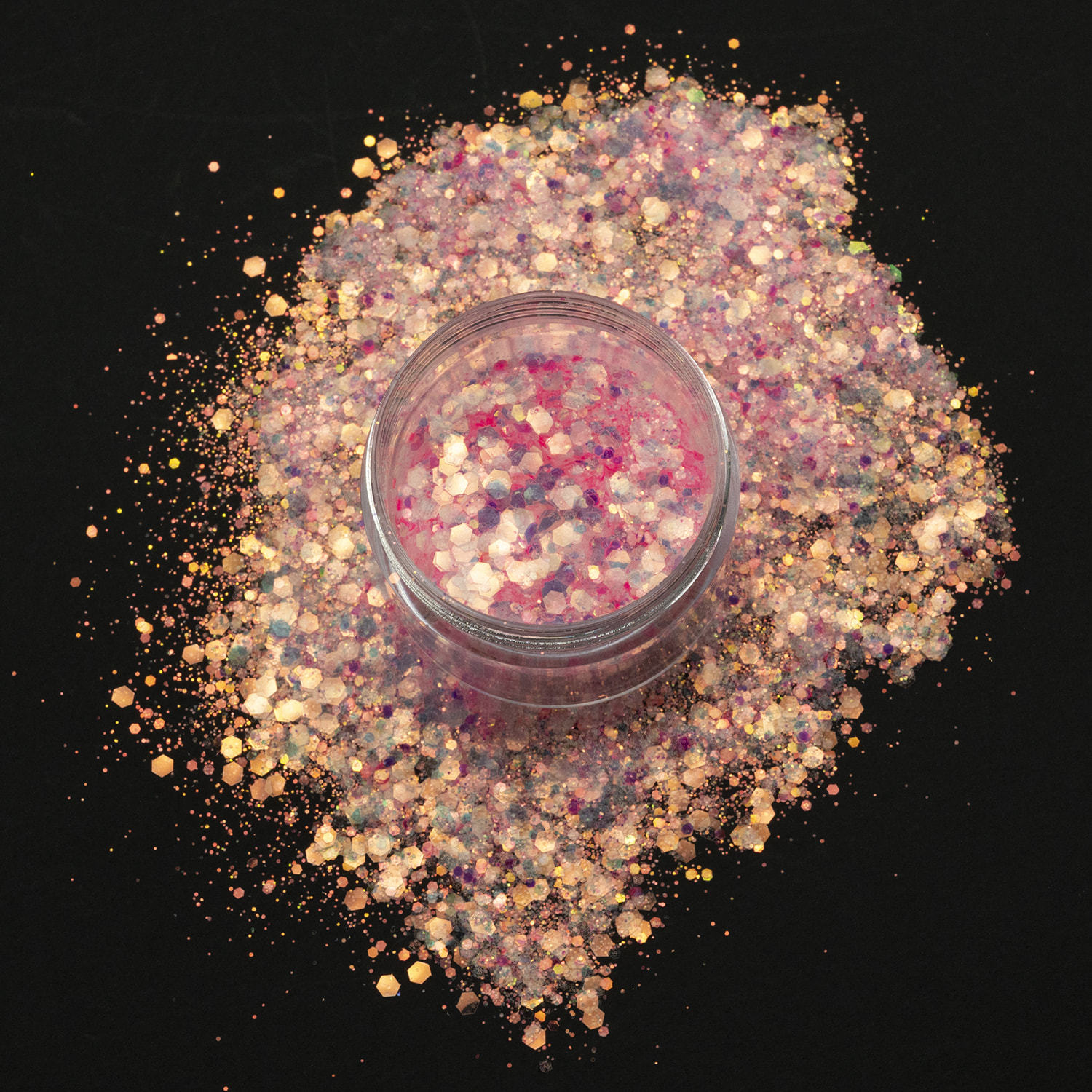 The multicolored gold onion powder is widely used in fields such as ink and coatings, nail art and makeup, glass craftsmanship, shoe material craftsmanship, Christmas decorations, clothing printing, building materials decoration, paper printing, plastic products, and electronic products. The product features high-temperature resistance, solvent resistance, acid and alkali resistance, and is injection-molded. It features a unique visual effect and high flash characteristics, making the product colors vivid and eye-catching.