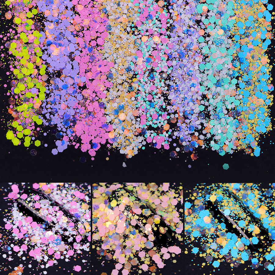 Xucai glitter powder is widely used in inks and coatings, nail art and cosmetics, glass crafts, shoe crafts, Christmas ornaments, clothing printing, building materials and decoration, paper printing, plastic products, electronic products and other fields. The product is resistant to high temperatures, solvents, acids and alkalis, and can be injection molded. It has unique visual effects and high glitter properties, making the product colorful and eye-catching.
