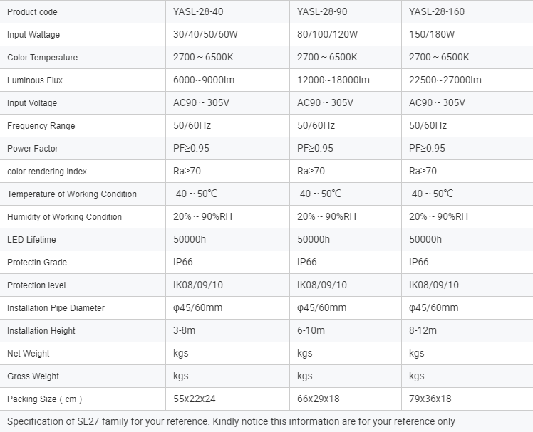 This fixture is mounted on a 4-8m in pole. lnstalling Ways Both Horizontal and Vertical available and adjustable angle-15°to+15°
