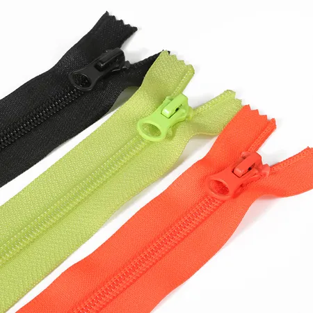 The zipper features a top-grade nylon tape construction. The puller is made of high-quality metal which boasts smooth sliding. This nylon zipper is a great haberdashery for clothing design.