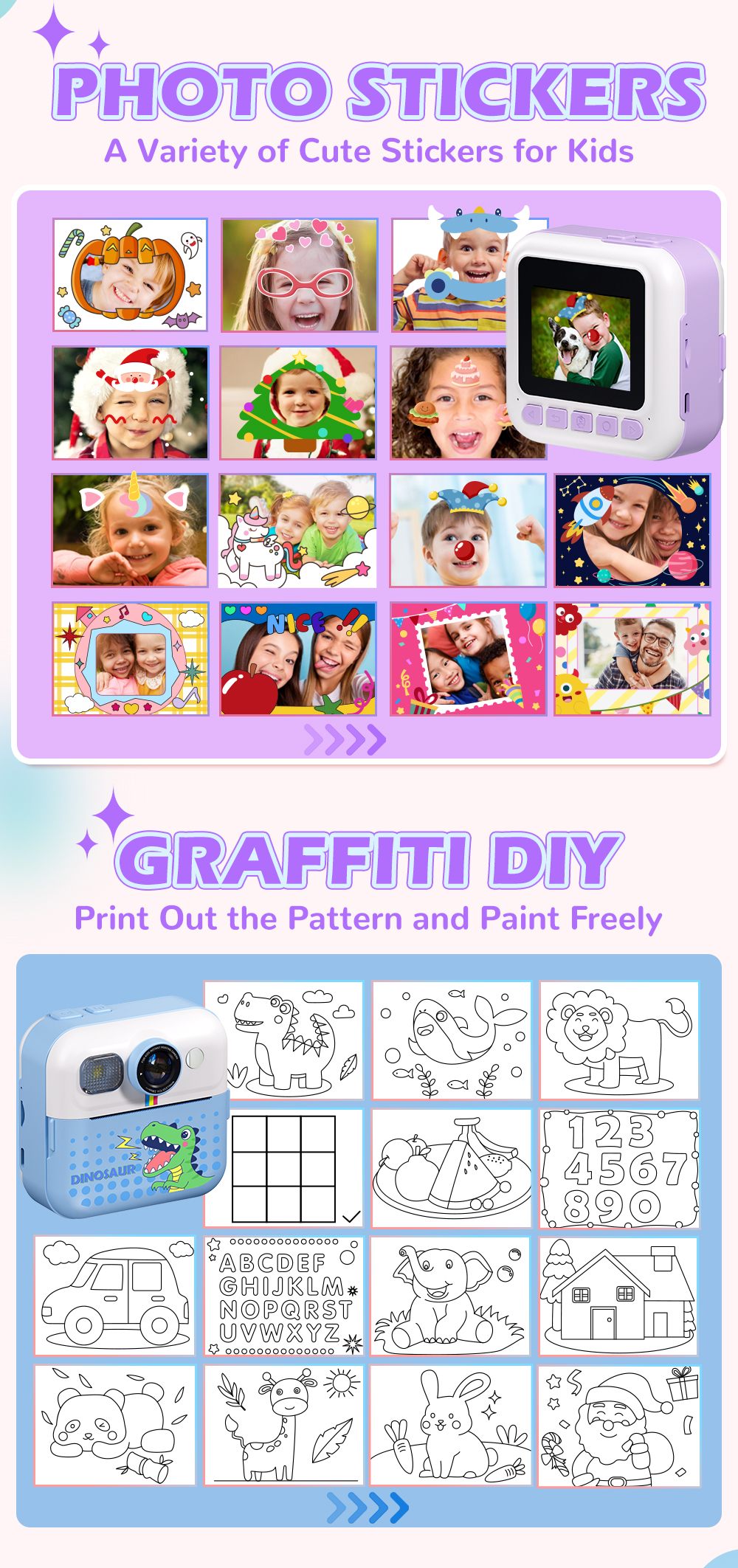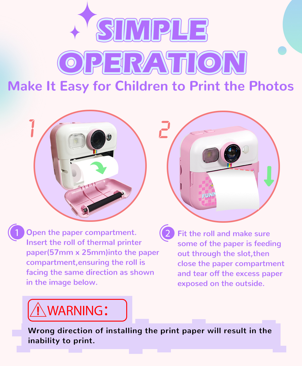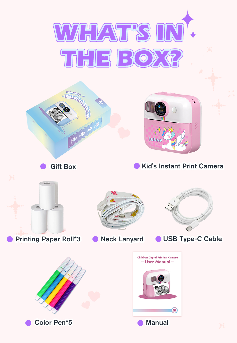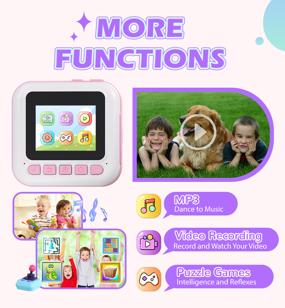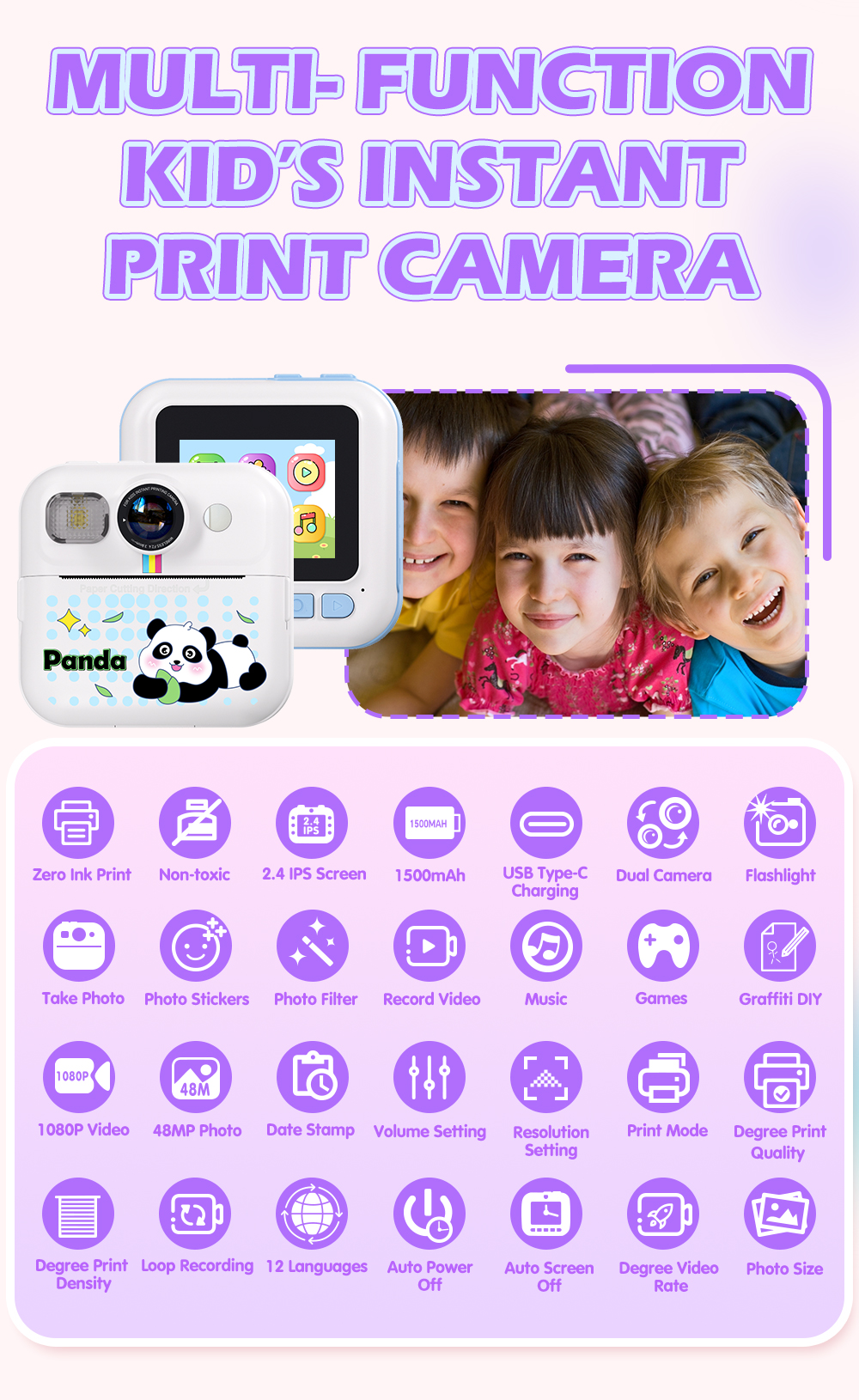 YMX CP02 ABS Silicone 2.4 Inch HD Screen Gift Pink White Blue Modern Cartoon Kids Toys Instant Print Camera for Girl Boy Baby