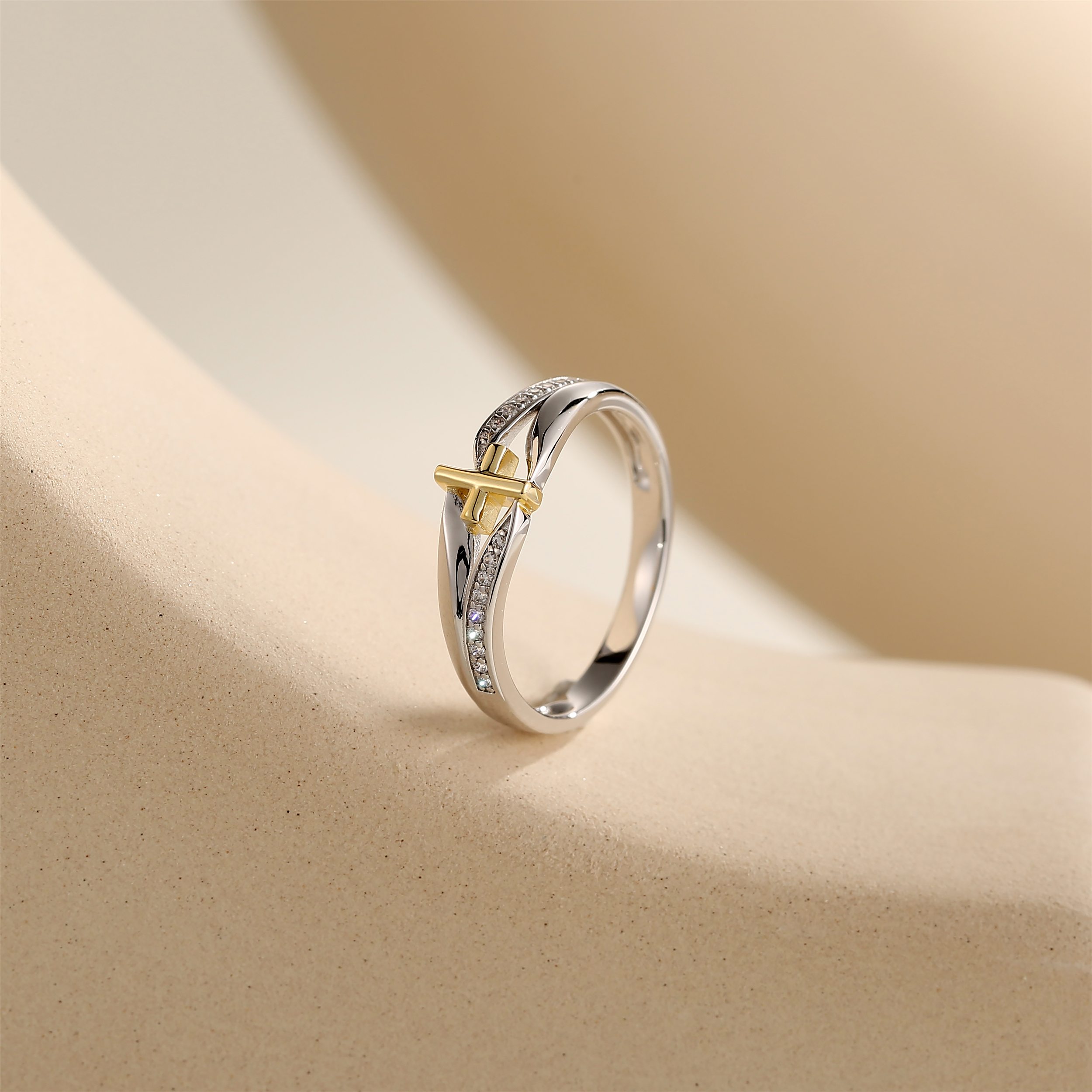 18K WHITE GOLD INLAY NATRUAL DIAMOND CROSS DESIGNS