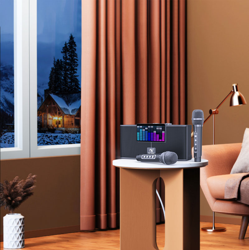 YS-208 20w Record Dual UHF Wireless Mic Karaoke Speaker
