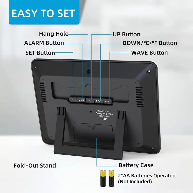 YT6542 Large screen display digital clock with temperature and humidity, calendar.
