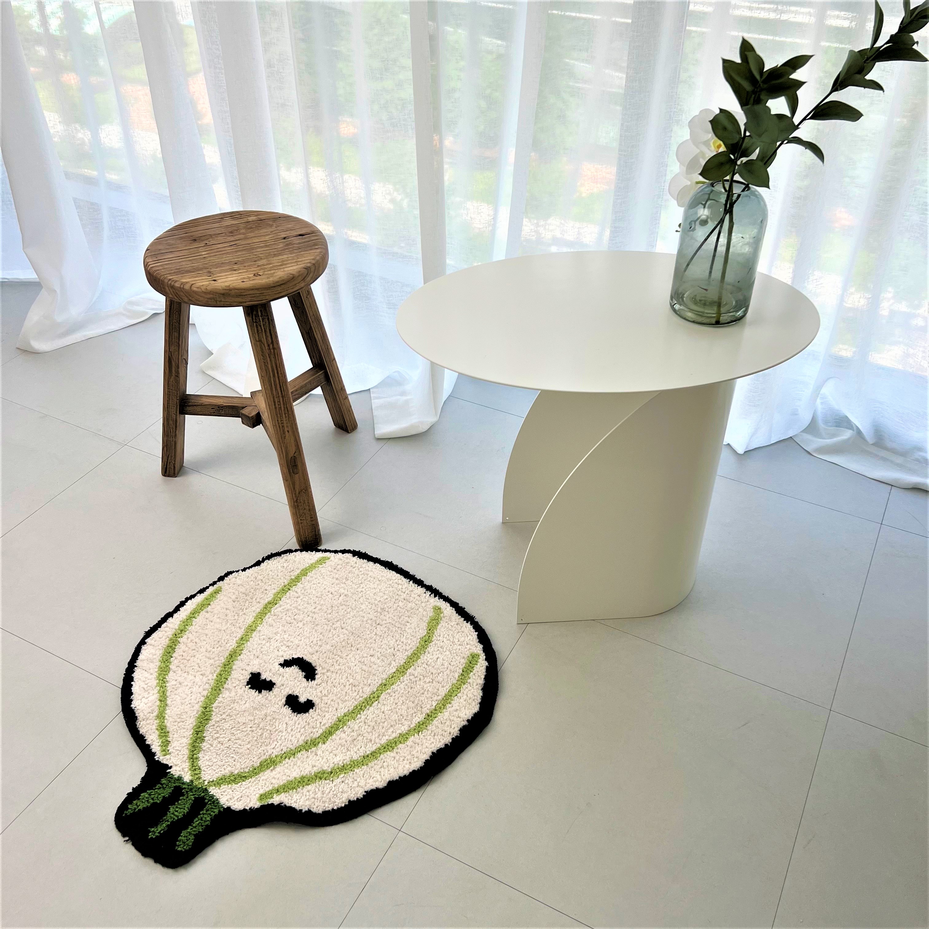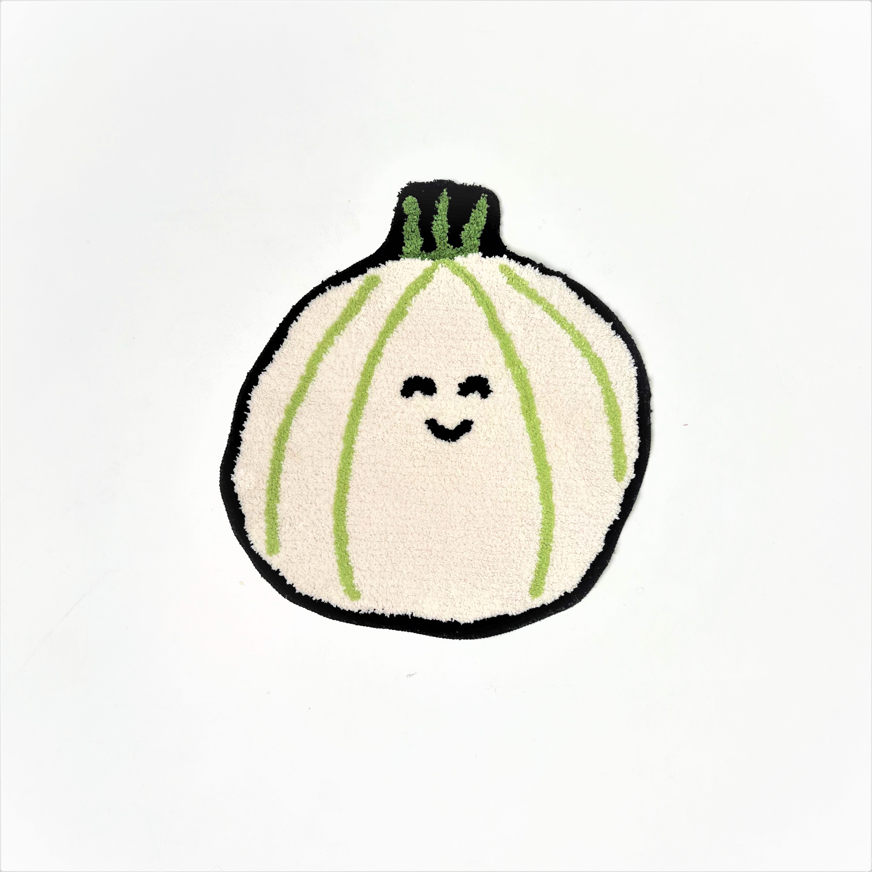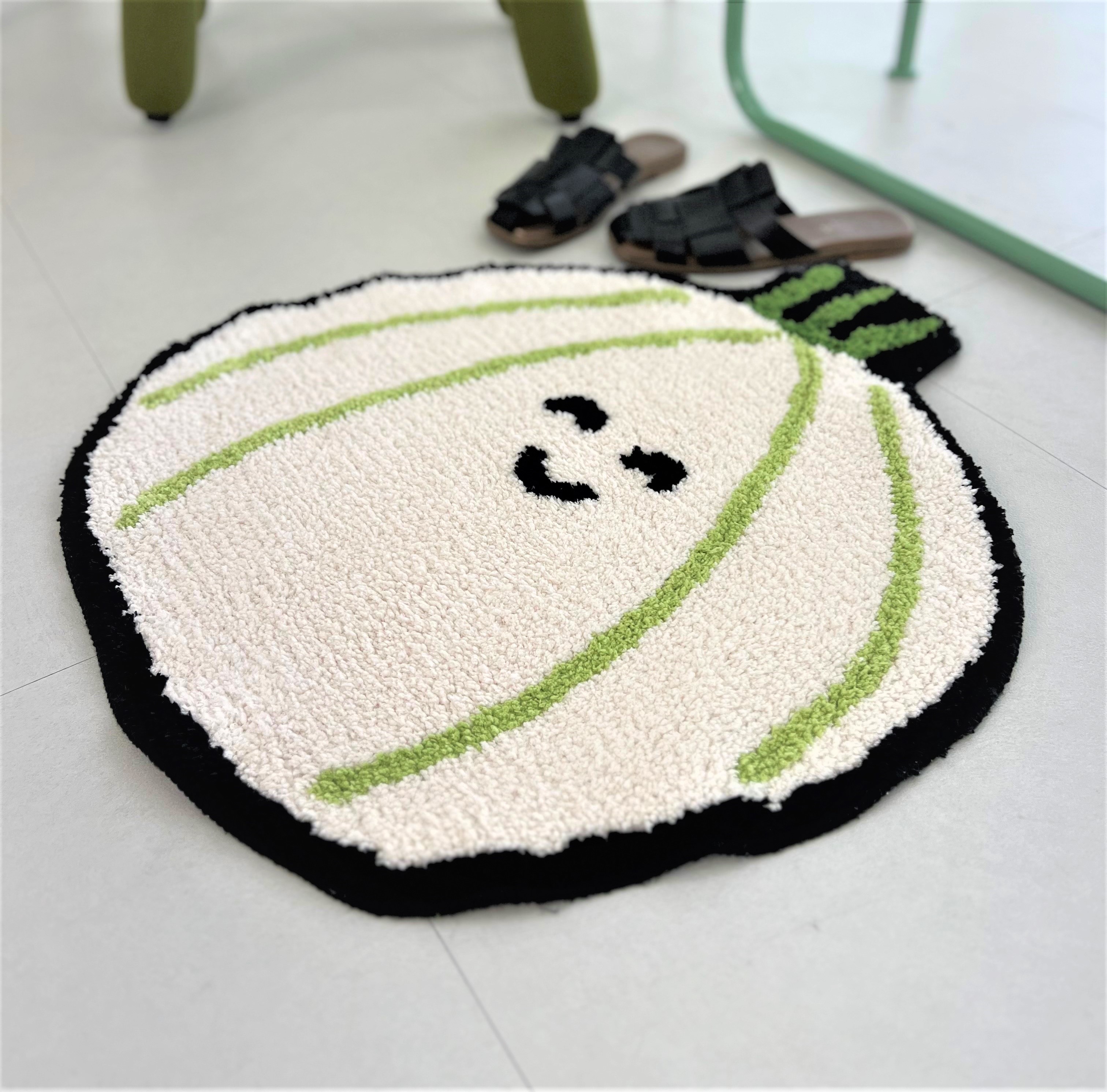 Featuring a cute onion character, this foot mat perfectly combines practicality and attractive design. It expresses the texture of onions with a light green line on a white background, and the simple yet lovely expression adds joy to the space.