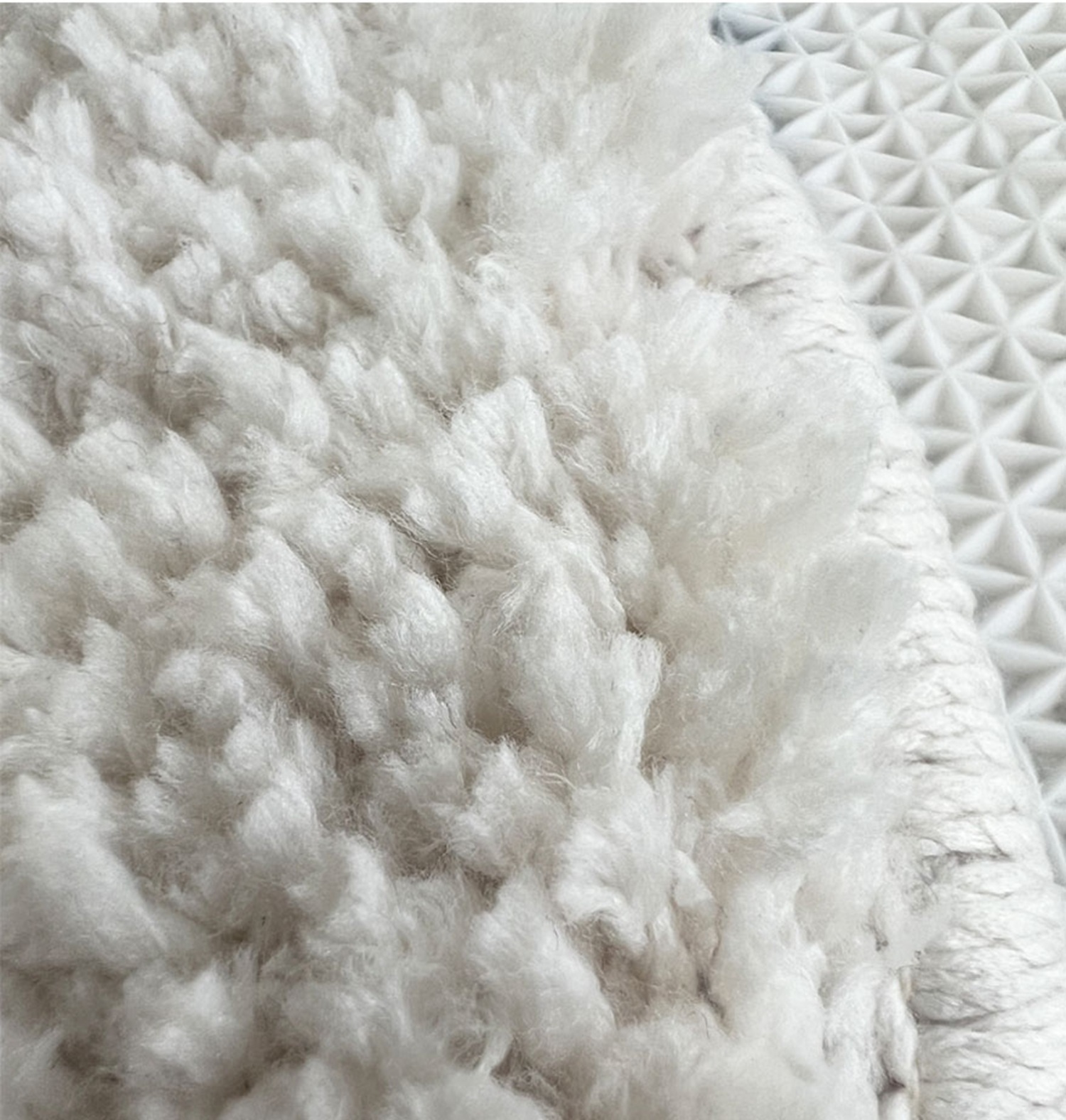 The surface of the foot mat is made of 100% high-quality polyester, so it has a soft touch and excellent durability. The polyester material absorbs water well and dries quickly, making it practical even in wet spaces such as bathrooms and porches.