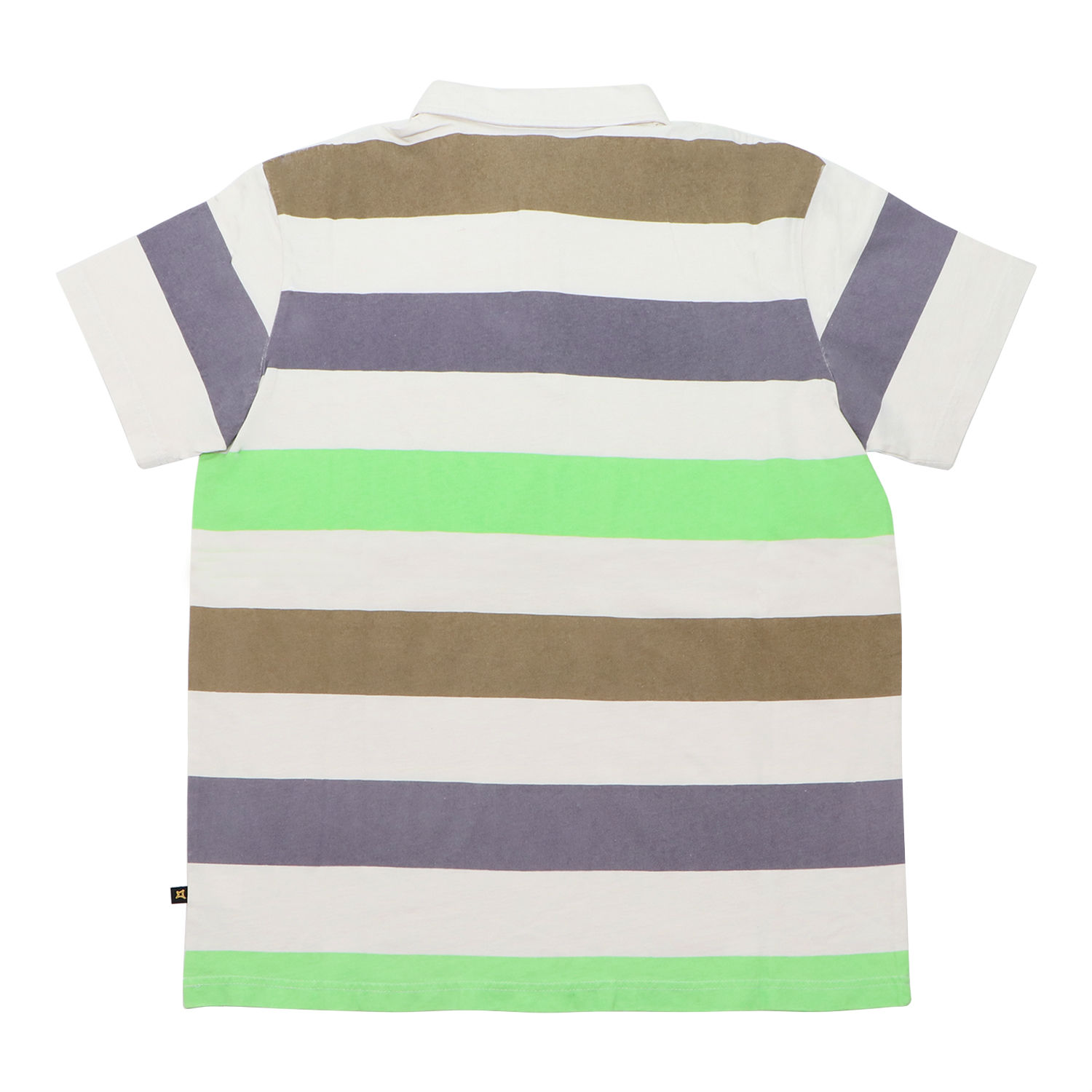 The displayed yarn dyed polo shirt is made of 100% cotton and offers a comfortable and breathable fit. It has a buttoned placket and has a pair of short sleeves. This polo shirt is decorated with colorful stripes on the body and is great for matching a casual look.