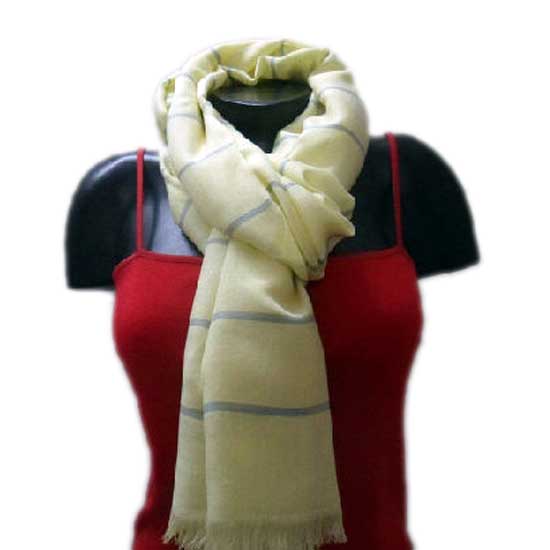 The displayed ladies’ scarf comes in a creamy tone with light gray stripes. The tassel at the edges lends extra style. Made of 100% viscose yarn, this beautiful scarf guarantees optimum wearing comfort.