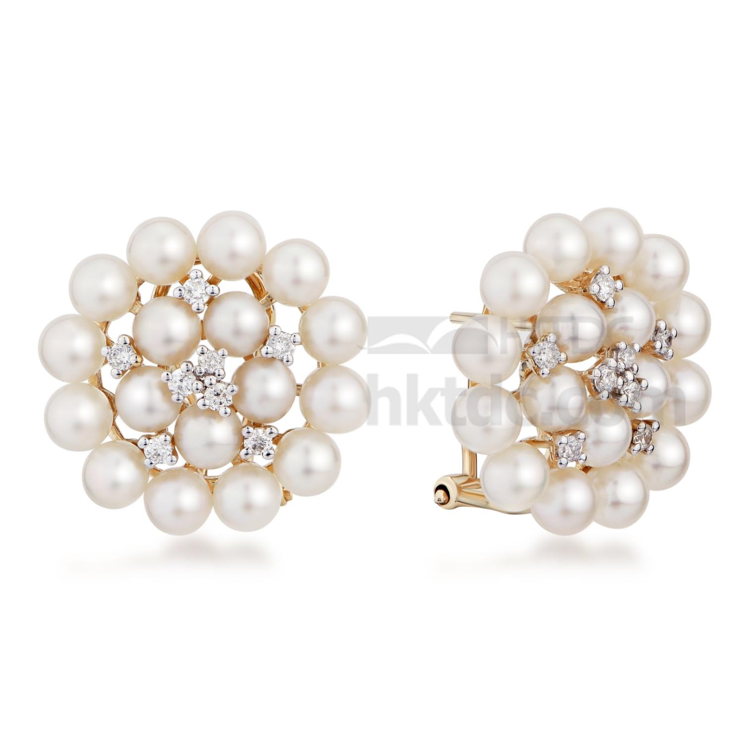 Yellow Gold Cluster Pearl Earrings with Diamond
